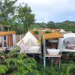 There are many styles of rooms to choose from. #Today I recommend the Vip tent 4, which has just been renovated and can accommodate 2 people😀 There is a bathtub and a balcony to sit and relax in. The bathroom is spacious and clean✨ The interior of the tent is decorated simply but there is plenty. At night, the weather is cool during this time.