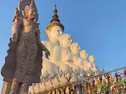 The Five Buddha Statues: Five large white Buddha statues are uniquely stacked, standing out prominently and visible from afar. This is a photo spot you simply cannot miss!
