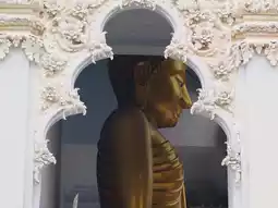 🌿The new ubosot is a striking white building with Buddha images on both sides (front and back) and graceful stucco decorations.