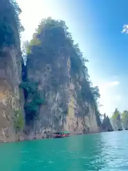 The highlight of my visit was exploring the iconic Cheow Lan Lake, a vast expanse of crystal-clear blue water framed by towering limestone mountains. Cruising across the lake in a longtail boat, I was awestruck by the sheer beauty of the jagged cliffs rising dramatically from the water. Their reflections shimmered on the surface, creating a mesmerizing, almost mirror-like effect. Each turn of the boat revealed new angles of this spectacular scenery, making it feel like a journey through a painting.