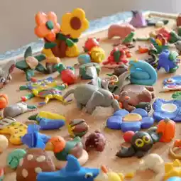 Another highlight of Pundin Khaoyai is the mini workshop with "clay molding", where we can mold colored clay into various shapes as we like, free of charge (but if we want to take some home, there's an additional charge).