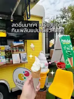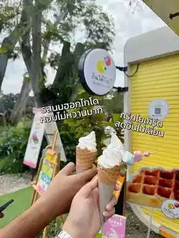 💗 The ice cream shop is called "Gin Dai Kin Dee". We stopped before going up to Khao Yai National Park. The shop looks like a drive thru. When we arrived, we looked at the menu, ordered, and drove on. The menu we ate was a soft-serve cone. We chose Greek yogurt flavor because we really like this flavor. It cost 85 baht. When we tried it, it was so refreshing. It was gone in no time. It was so delicious. So satisfying.