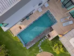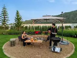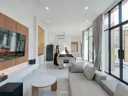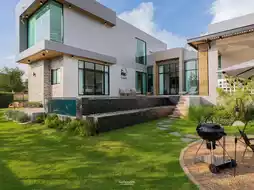 🌳 This summer, gather your family and friends to party at Khao Yai. Baan Poon is a large modern pool villa that can accommodate up to 15 people. It is located in the middle of a valley. No matter where you look, you will see a magnificent mountain view. The atmosphere is quiet. There is a super chic see-through pool, another great photo spot. There is also a camping area, activity area, and a complete party zone. Starting at 6900 baht