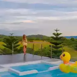 Good feel, focusing on the mountain view, whether it's the pool area, karaoke room