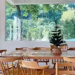 The cafe is located in the middle of nature, surrounded by mountain views. The atmosphere is sooo good~ It has a simple and luxurious Tuscany style mixed with a bit of Japanese minimalism and a bit of English nobility. 🤎