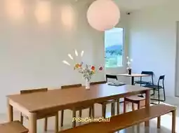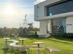 together at Today's Moment Khao Yai, a lovely and trending cafe in Khao Yai! This cafe stands out with its warm, minimalist decor, perfectly blending with the surrounding nature. It's perfect for those looking to escape the hustle and bustle of the city and enjoy a relaxing coffee on their day off. The cafe offers a peaceful and friendly atmosphere. The interior is decorated in white and wood tones, creating a warm