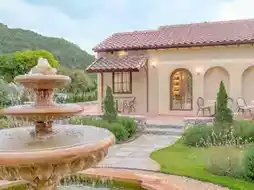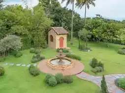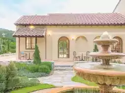 The surrounding area is lush green gardens 🌳🌿 decorated with stone fountains 🪷, adding a romantic and luxurious feel. Perfect for strolling, taking photos, or simply enjoying a cup of coffee while enjoying the Khao Yai mountain scenery ⛰️🍃. There are plenty of photogenic spots 📸 in front of the house, in the garden, at the fountain, and on the terrace.
