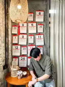 And inside, the highlight is the table next to this antique Chinese calendar.