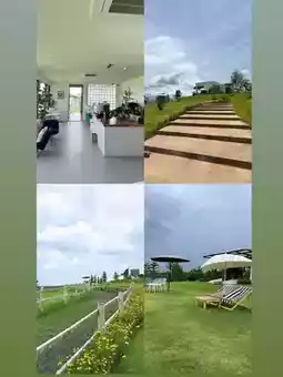 A hilltop cafe nestled amidst lush green fields, offering stunning natural scenery from every angle. Plus, it's pet-friendly, so bring your dog or cat for a leisurely stroll! But be sure to keep them on a leash! The mist in the morning is romantic, while the sunset in the evening is breathtaking.