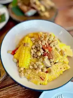 it's also a cafe. And most importantly, the view behind the restaurant is the river, making it a really beautiful place to take photos.