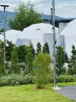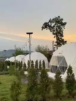The rooms are excellent, designed as dome tents with full amenities. It's quiet and perfect for relaxation. The staff provides exceptional service. Highly recommended to book and visit with a group. The entrance might be a bit confusing, but it's accessible. Enjoy a 360-degree mountain view.