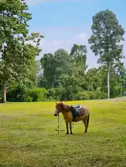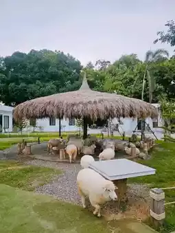 There's an entrance fee of 120 baht, but you can get discounts on drinks and animal feeding. The sheep here are incredibly well-behaved and entertaining. They also offer horseback riding and kayaking. It's a complete experience. If you're visiting Khao Yai, definitely check it out! It's so much fun!
