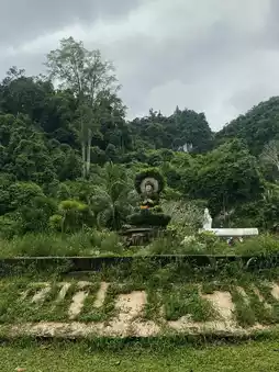 This hidden gem in Southern Thailand truly feels like stepping into another world 🍃 Surrounded by lush mountains and deep greenery, the atmosphere is peaceful, calm, and filled with spiritual energy 🌳✨