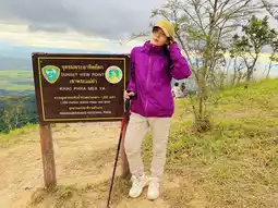 Another popular viewpoint at Khao Luang Sukhothai, where many tourists come to watch the sunset, is the summit of Phra Mae Ya Mountain, 1,200 meters above sea level and 980-1,000 meters from the campsite. There are two trails to choose from: one behind the welfare shop towards Pha Chom Prong, and the other behind the restrooms towards Khao Phra Chedi. The trail is flat and passes through a large forest. Along the way, you'll find a variety of beautiful plants to admire. It's a pleasant walk, and you won't feel tired at all. There's a steep climb to the summit, but it's quite steep.