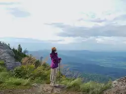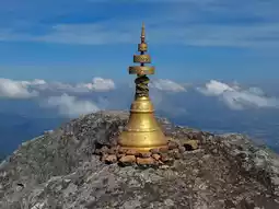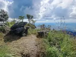This is the farthest viewpoint on Khao Luang Mountain from the campsite, a 2.2-kilometer hike. The trail features steep, flat trails, and a cliffside walk. It's the highest peak in Khao Luang Sukhothai, offering stunning 360-degree views of the surrounding mountains and forest. A small golden chedi stands atop the rocky outcrop, creating a stunning contrast against the lush green forest. This is also a great spot to watch the sunset, offering a peaceful atmosphere. It's not very popular due to the relatively long walk.