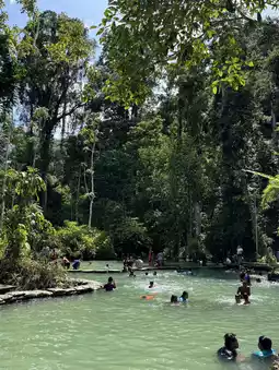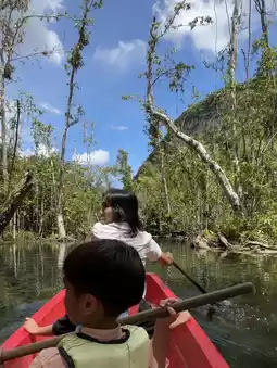 I went boating in the middle of the upstream forest of Ban Nam Rat, located in Surat Thani, just 30 minutes from Ratchaprapa Dam. You can plan to have the boat trip on the same day as the dam boat trip. This place is divided into 2 zones: the boating zone, which will take about 30 minutes to row back and forth along the same route, depending on your rowing skill. However, if you don’t want to row and want to sit comfortably, there will be staff to row the boat for you. It should be 50 baht, I’m not sure. We didn’t use the service. The other zone is for playing in the water. **The water playing zone is very crowded. Even though we went on a weekday around 11.30, it was already full of people. If you want nice pictures without people in them, you have to come as early as 9. As for boating, there are very few people, very chill. **Costs: 20 baht for parking and 70 baht for admission including boating and water playing. **You are not allowed to bring anything in, except for a small wallet, car keys, baby bottles, and a change of clothes (you must carry your clothes, you can’t put them in a bag). Children wearing diapers are also not allowed. **#VisitSuratThani #VisitSuratThani #SuratThani #BanNamRatUpstreamForest #BanNamRatUpstreamForest #Cheow Lan Dam #VisitSouth
