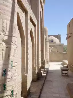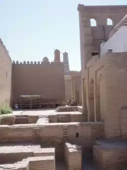 The area surrounded by a double wall of outer and inner walls, about 6 km long, is called "Ichan Kala" and contains many palaces, mosques, and minarets (tall towers attached to mosques)😆🙌🏻