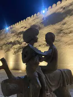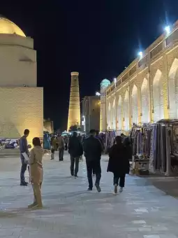 Itchan Kala, the historic walled city of Khiva, transforms into a mystical realm at night. As the stars twinkle above, the city's ancient buildings and majestic minarets take on a serene quality, bathed in the soft glow of moonlight. The narrow streets and alleyways are quiet, with only the occasional sound of footsteps breaking the silence. I wandered through the city's deserted streets, marveling at the intricate tilework and ornate decorations that adorn the buildings, their beauty accentuated by the night's gentle light. The atmosphere is enchanting, with the city's rich history and cultural significance palpable in every corner. Itchan Kala at night is a must-visit destination for anyone seeking to experience the authentic essence of Khiva's cultural legacy, offering a glimpse into the region's glorious past and architectural traditions. The city's nighttime beauty is truly captivating.