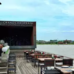 "ground chao phraya" is a notable riverside spot where you can enjoy delicious food and drinks while taking in the spectacular views along the Chao Phraya River.