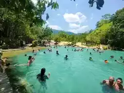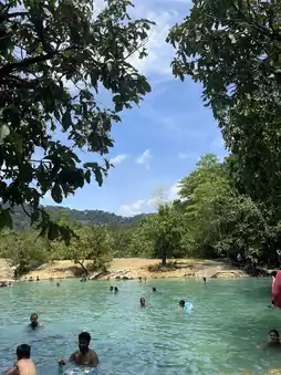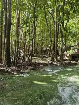 Anyone who comes to Krabi must not miss visiting the Emerald Pool. It is a place to play in the water to cool off. The water is clear and the colors are beautiful. From the entrance to pay the entrance fee, there is an 800-meter nature study trail. Or you can walk another way for 1,200 meters. The trail is shady. When you get there, you will see the Emerald Pool. Then walk another 500 meters to the spring pool where you can't play in the water. But the color is very beautiful.