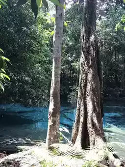 The "Emerald Pool" is located within the Khao Pra-Bang Khram Wildlife Sanctuary 🌳. A 10–15 minute walk through the forest will lead you to a natural pool with stunningly clear green water, resembling crystal 💚✨. The water is so clear you can see the bottom perfectly, no photo editing needed! 😍