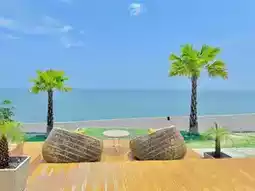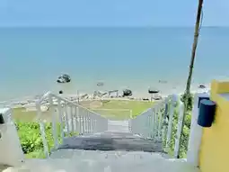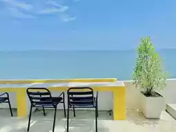 🏡 Located within the Golden Cliff Beach Resort on the Trat-Khlong Yai road 🌿 The back of the cafe offers views of the Banthat mountain range, while the front faces the sea 🌊. There's even a staircase leading down to the beach for a leisurely stroll.