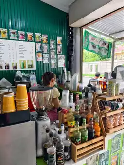 Address - The location is next to 7-11 in Soi Khlong Son. The shop is a prominent green color.