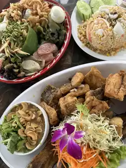 🛖 There are numerous waterfront pavilions to sit in, as well as air-conditioned rooms and a karaoke party room, which requires advance booking.