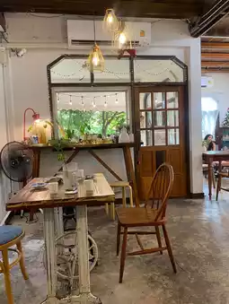 The menu features a wide selection of homemade cakes, including Lemon Pound Cake, Strawberry Shortcake, Carrot Cake, Coconut Cake, and more! The flavors are delicate and perfectly sweet, and they're served with signature drinks like Thai Iced Tea or Jasmine Latte. Prices range from around 115–165 baht per piece. The service is friendly and attentive, and there are seating areas both indoors and outdoors in the garden, perfect for getting some light work done or relaxing with friends on a day off. 🪴