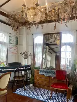The interior is decorated with vintage items, crystal chandeliers, and delicate wooden furniture, making it feel like you're sipping tea at an artistic friend's house. 🎨