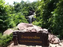 It is a waterfall originating from the Namuang Noi stream. It is a medium-sized waterfall that flows along the canyon before falling down into small levels. When it reaches the 90-degree cliff, it falls down to the bottom before flowing into the Mekong River. Namtok Thung Namuang is surrounded by forest.