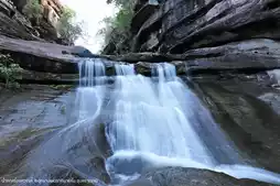 From the Pha Taem National Park office, drive on Highway 2112 and turn right towards Ban Na Pho Klang. Continue for approximately 12 kilometers. There will be a fork on the right towards Ban Nong Phue. Follow the signs for Soi Sawan Waterfall for approximately 3 kilometers. Near the waterfall, park there and walk for approximately 500 meters via a nature trail and stairs to reach Soi Sawan Waterfall.
