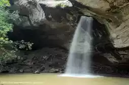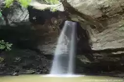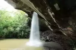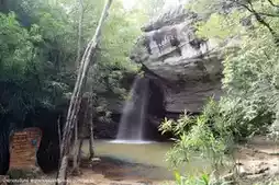 Saeng Chan Waterfall or Long Ru Waterfall is an Unseen waterfall located in Pha Taem National Park, Khong Chiam District, Ubon Ratchathani Province. Its distinctive feature is the water flowing into large holes in the rocks that were created by water erosion. Traveling is convenient. From the parking area, it's a short walk down to the waterfall. The path is stairs that lead directly to the waterfall.
