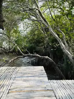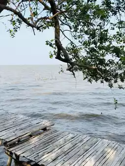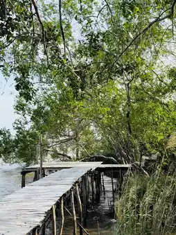 Phatthalung Botanical Garden Walk on the wooden bridge that stretches into the middle of the mangrove forest. It feels like walking in a tree tunnel. The atmosphere is shady, quiet, and you can hear the birds singing