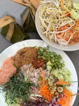 Breakfast is very varied, especially the local dishes, such as khao yum (rice salad) and khanom jeen (rice noodles). We loved it!