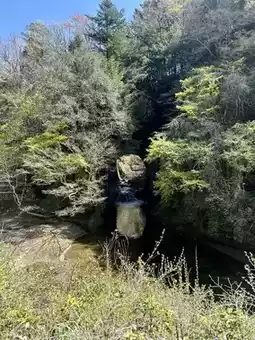 #Nomizo Falls #Kameiwa Cave 🏞️🌳The waterfall actually looks like a heart! There was also a bell of happiness so I rang it🔔The cherry blossoms were beautiful and soothing🌸The Kamo River was wonderful so I want to go again!
