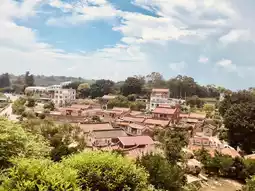 Climbing up to Zhushan Park for a panoramic view🌲, one can see the interwoven tapestry of red-tiled roofs and green foliage that forms a picturesque scene.