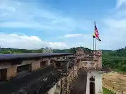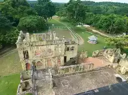 Not sure what I was expecting, since it was never billed as a finished castle. But just fyi, it is mostly a shell. There are a couple of panels about the castle and the man who tried and kept failing to make his fortune, and one room is fitted with furniture to make it look like it might have looked if it had been finished. But other than that it's basically a shell. You can climb as high as the roof of the tower and see the surroundings from above. It's all worth about a half an hour. Which is just as well, because the heat and humidity was oppressive. I had a car so it wasn't too much hassle to get to.