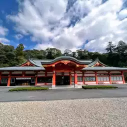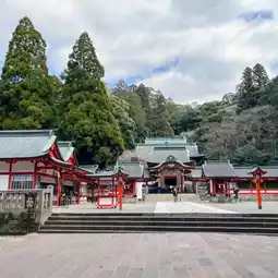 The shrine is built on the hillside of Mount Kirishima, facing the Takachiho Peak. There are several quiet trails behind it, which lead to the mountain shrine, the forest area and the observatory. It is highly recommended that you take some time to walk to the observatory and enjoy the beautiful scenery after visiting Kirishima Shrine.