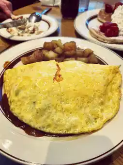 The pancake cream was not overly sweet, which was great! There are sauces like maple, coconut, and raspberry? on the table, allowing you to enjoy a variety of flavors.