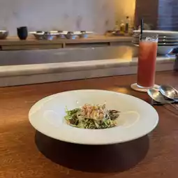At the counter seats on the first floor, the food is prepared on the hot plate in front of you, so you can enjoy the waiting time!