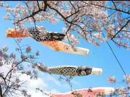 4. Scenic Harmony & Japanese Aesthetics: During the sakura season, colorful koinobori (carp streamers) flutter over the Kitakami River. The soft pink blossoms contrast beautifully with the vibrant flags, forming a picturesque scene straight out of a traditional Japanese painting.