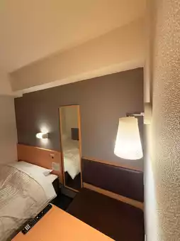 SuperHotel was founded in Osaka in 1989 and now has 170 branches. It has been ranked first in the economic department of chain hotel satisfaction survey for ten years. The room has a comfortable mattress and you can choose your own pillow in addition to the long pillow in the room. The 15-square-foot space can be used to store items such as the refrigerator as a table using furniture, and a combination lock can be used to save on magnetic card fees. The room is equipped with a Sharp ion air purifier.