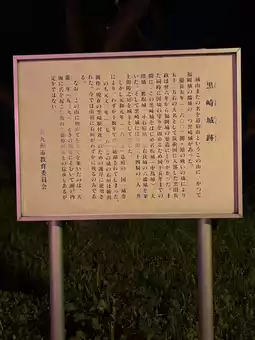 He also appointed Inoue Suou-no-fusa, one of the Kuroda Twenty-Four Knights, as the lord of Kurosaki Castle. However, in 1614, the shogunate issued a one-castle-per-province order, and the castle ceased to function after just over a dozen years.