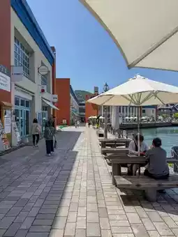 If you walk further from there, you will find restaurants, where you can drink beer and eat sweets by the sea, and enjoy the scenery as if you were overseas.