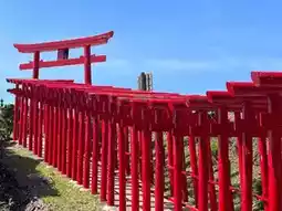 There is a torii gate at the highest point of the mountain, placed - a box, legend has it that throwing 5yen coins into it can make your wishes come true