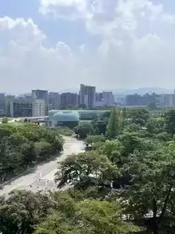 Climbing to the top of the castle tower, you can enjoy a wide view of the Murasaki River and Kitakyushu city scenery. The greenery and modern buildings are intertwined, making it a good place to relax during the journey🌳🌇.