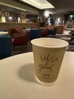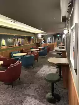 The new, more relaxed design allows you to sit at tables and chairs and enjoy free drinks in the lounge.