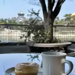 Sipping coffee and donuts while sitting outside and gazing at Kokura Castle is a delectable combination, isn't it?