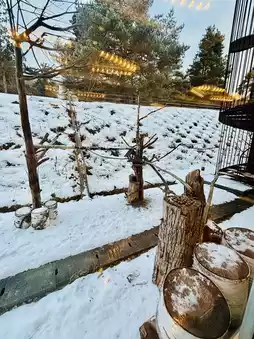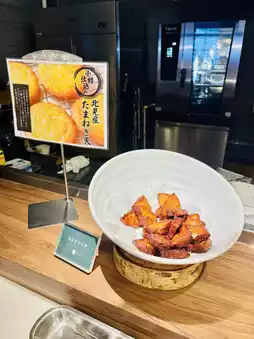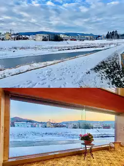 During breakfast, guests can enjoy the enchanting snowy landscape through floor-to-ceiling windows. The snow-covered scenery is serene and magical, like a fairytale. The hotel thoughtfully places pinecones outdoors to attract Hokkaido's unique Ezo squirrels. Although the heavy snowfall prevented sightings of the squirrels, the effort reflects the hotel's respect and love for nature.